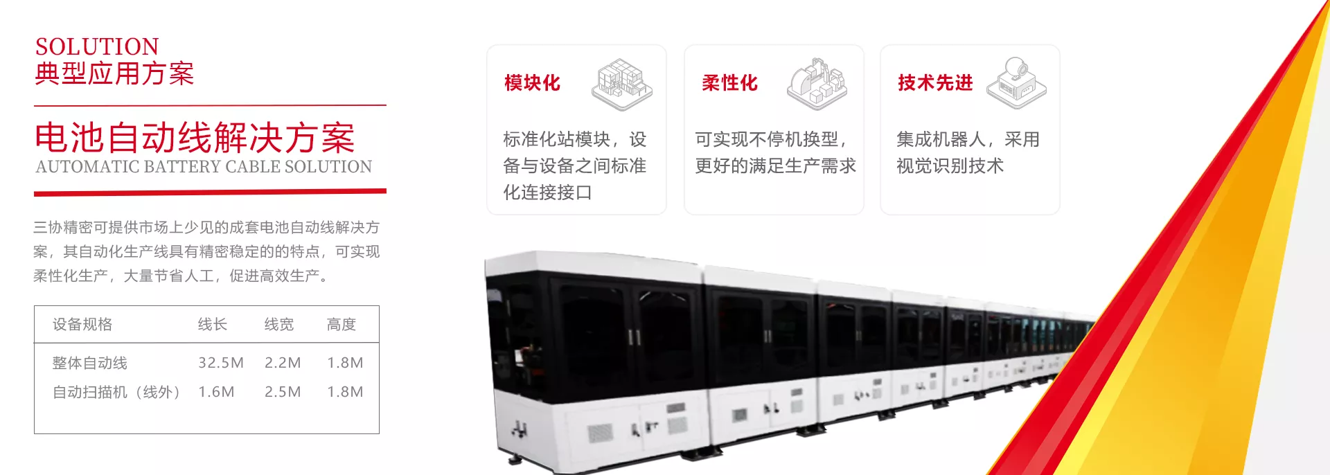 电池生产线总长32.5M,宽2.2M,高1.8M;自动扫码机(长1.6M,宽1.5M,高1.8M)在线外